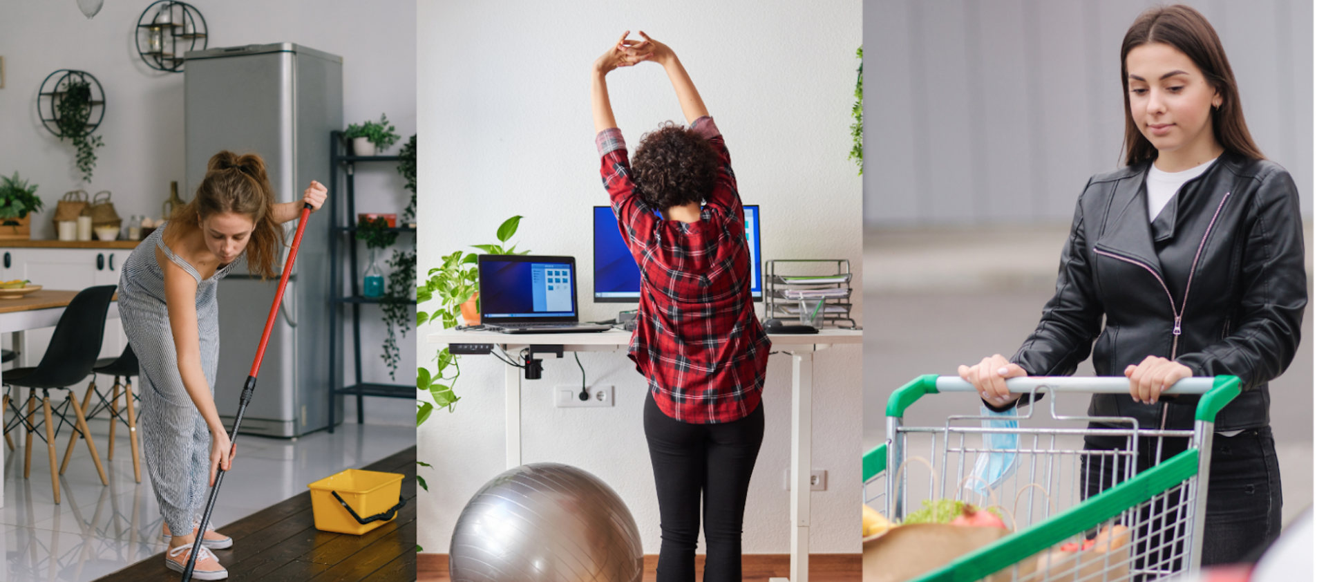 Believe it or not, household chores can actually be a great way to get exercise. Vacuuming, sweeping, mopping, and lawn-mowing all require physical activity, as do tasks like washing dishes or doing laundry.