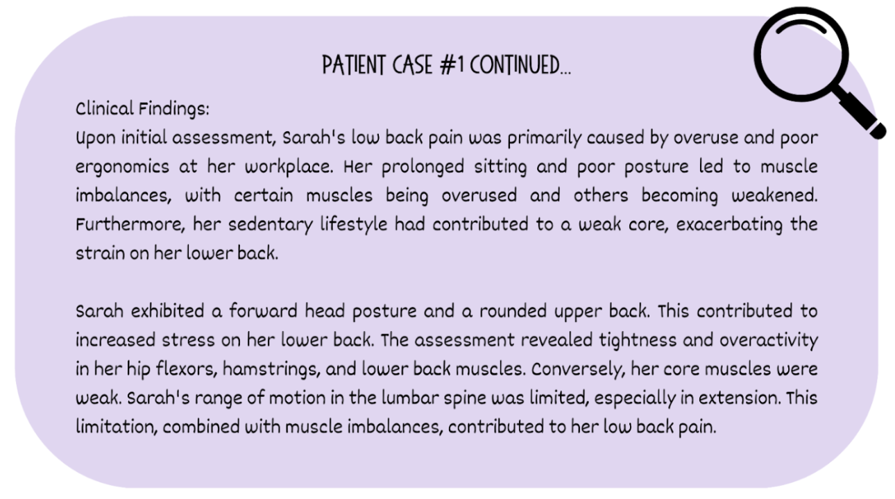 Contrary to thought, the spine is not a standalone structure. It depends on a complex network of muscles and ligaments to maintain stability, balance, and strength, supporting our everyday movements. Poor core strength can result in persistent back issues. These problems may include a lack of spinal support, poor posture, compromised stability— leaving the spine more susceptible to excessive movement and strain, muscle imbalances, inadequate support for functional movements, and overcompensation by other structures such as muscles of the back and the spine leading, ultimately leading to low back pain.