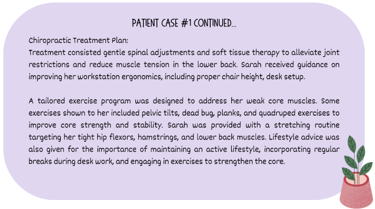 Here are a few cases we encounter in our clinic and how they benefited from chiropractic therapy (names and ages changed for confidentiality purposes):