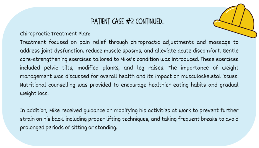 Through a combination of therapeutic chiropractic adjustments, soft tissue therapy, personalized safe and effective exercises, and lifestyle modifications, most low back pain will gradually improve. We can also help with addressing any underlying causes to help promote long-term spine health. Regular follow-ups are generally recommended to monitor progress and make necessary adjustments to the treatment plan.